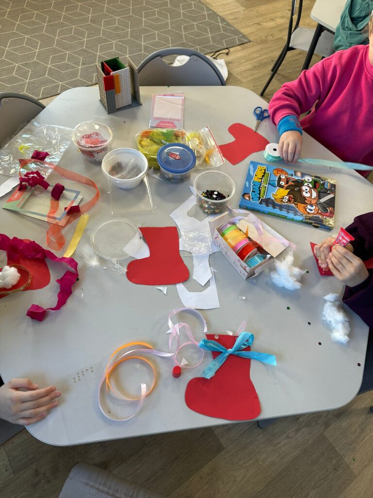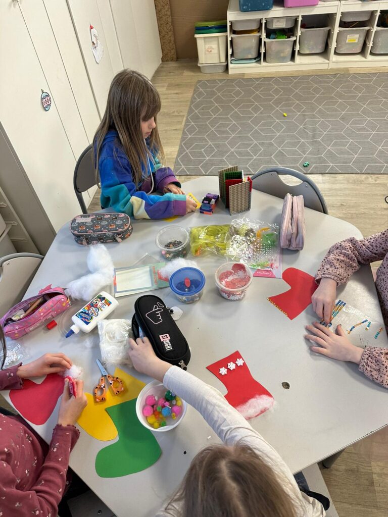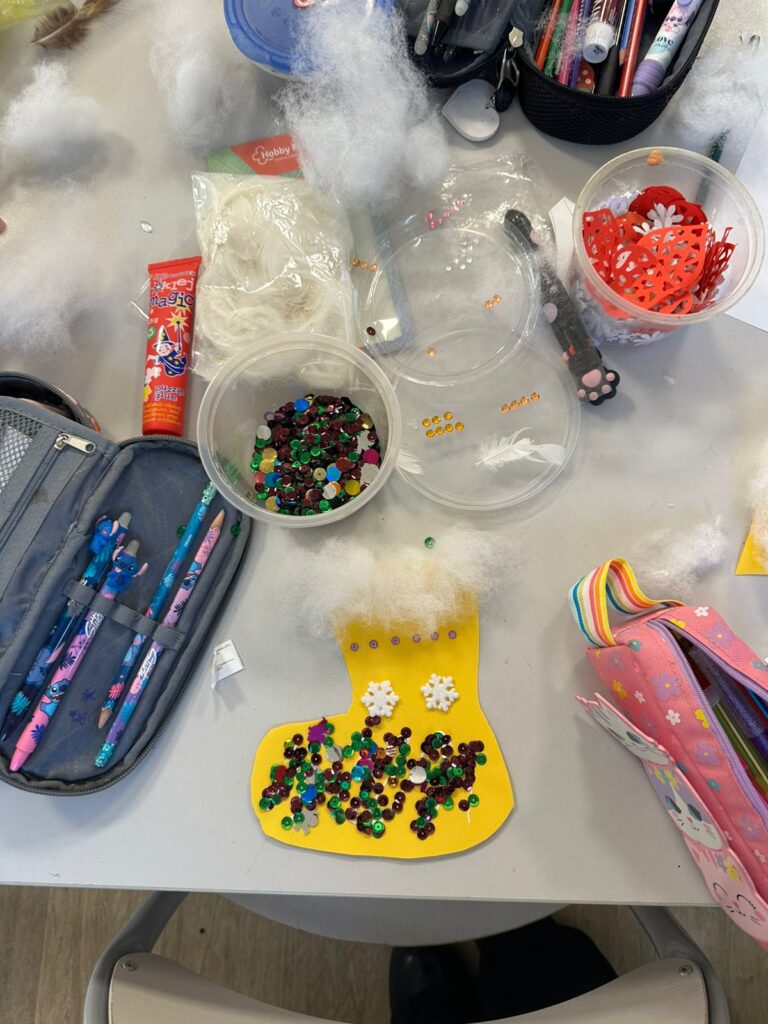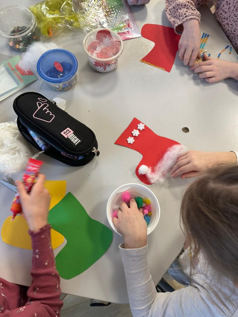 Na świetlicy zorganizowaliśmy zajęcia plastyczne, podczas których wykonywaliśmy kolorowe skarpety, aby ozdobić naszą świetlicę