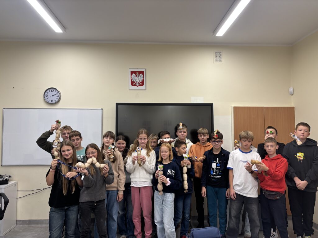 Aby lepiej utrwalić zdobyte wiadomości, każdy z uczniów wykonał swojego własnego tasiemca!