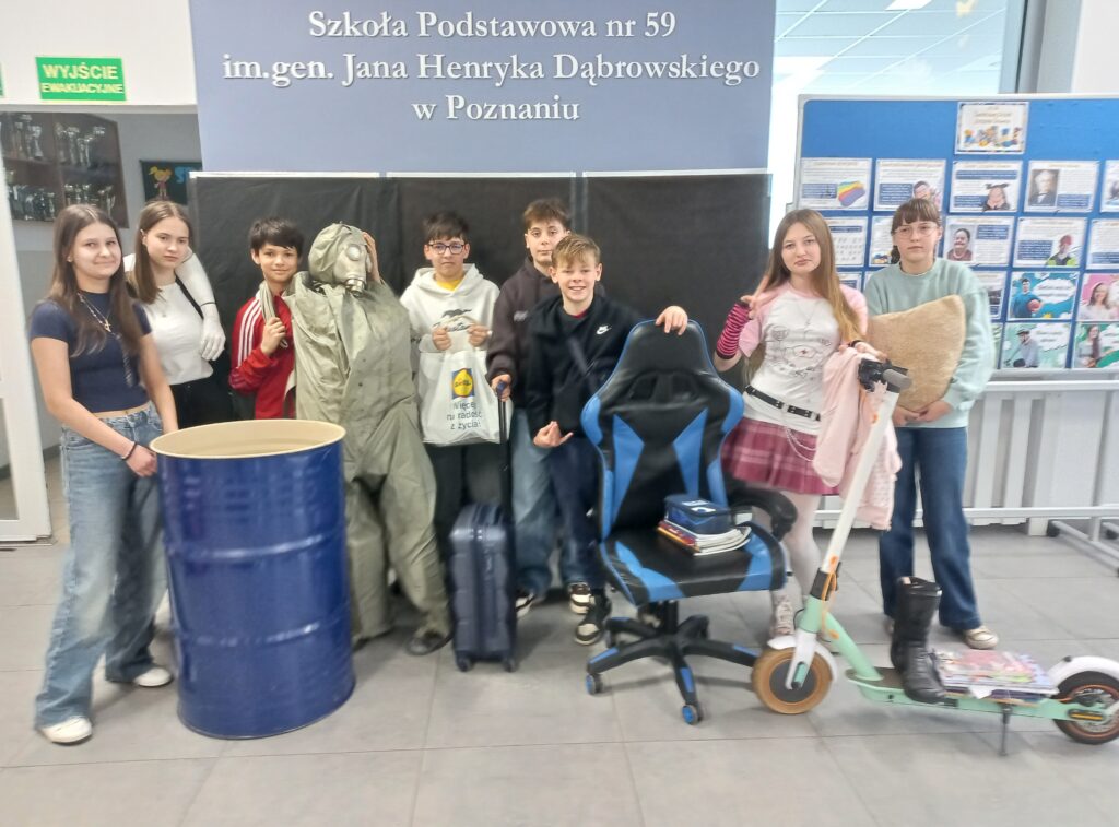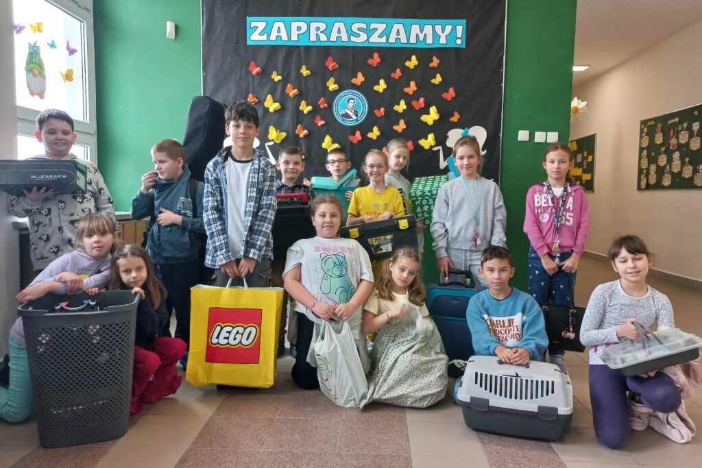 Z okazji pierwszego dnia wiosny obchodziliśmy w naszej szkole Dzień bez Plecaka. Kolejny raz uczniowie zaimponowali swoją pomysłowością, pakując książki do… beczki, kombinezonu, szuflady i najróżniejszych pojemników, przywożąc je hulajnogą lub na krześle.