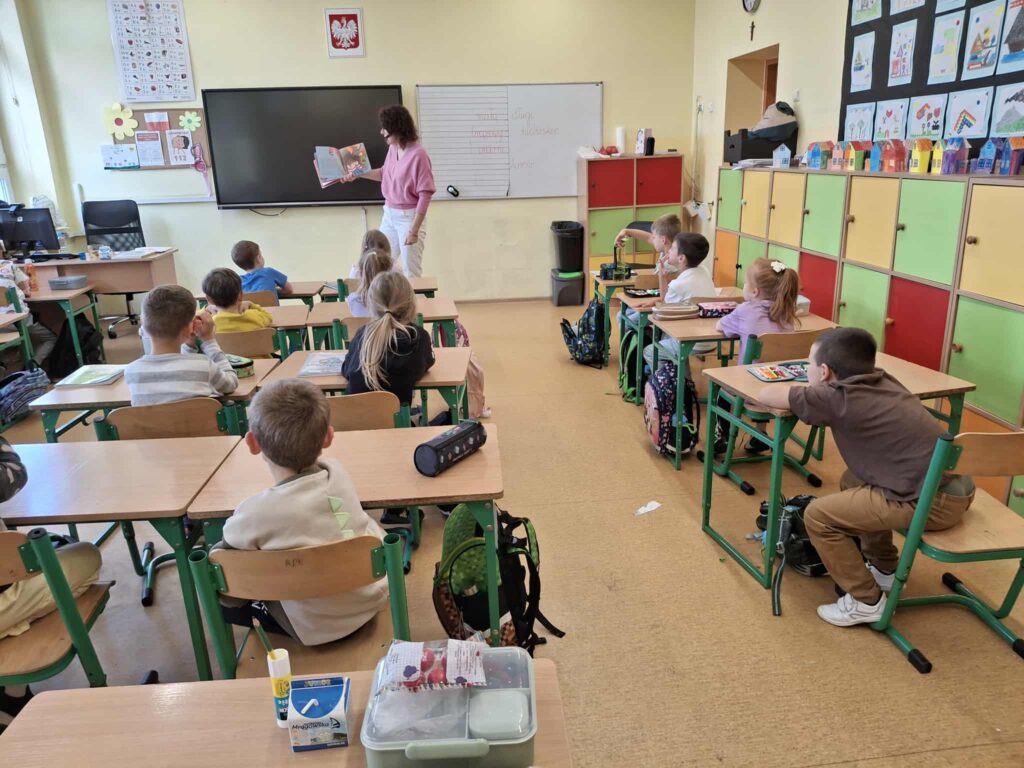 29 września to Dzień Głośnego Czytania. Z tej okazji klasę 1a odwiedziła mama Joachima. Pani Basia najpierw zaprosiła dzieci do wspólnego tańca, a potem przeczytała książkę o przyjaźni i różnorodności „Basia i granice” Zofii Staneckiej. Dziękujemy za miłe spotkanie.