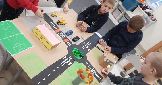 W dniach 07.11.2022-10.11.2022r. realizowaliśmy projekt ,,Poznań – moje miasto”. Uczniowie świetlicy słuchali legend o powstaniu miasta Poznań, rogalach świętomarcińskich oraz o koziołkach Pana Zegarmistrza. Z wielkim zaangażowaniem powstała makieta dzielnicy Minikowo. Uczniowie poszerzyli wiedzę na temat gwary poznańskiej, słuchając również ,,Księcia Szaranka”. Zwieńczeniem projektu były prace plastyczne z charakterystycznymi miejscami w mieście.