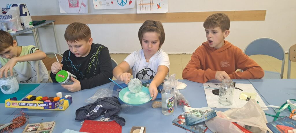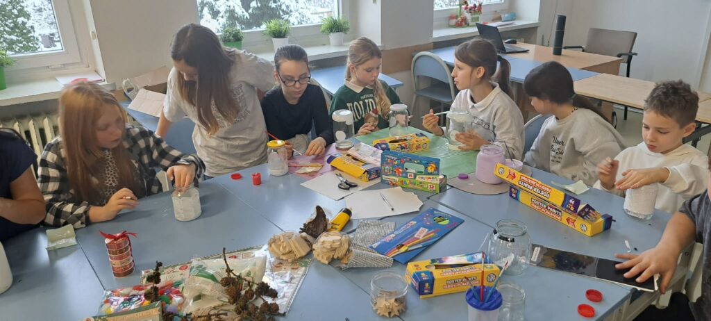Podczas lekcji dzieci uczyły się, jak w ekologiczny sposób ponownie wykorzystać przedmioty codziennego użytku, takie jak słoiki, oraz jak z pomocą kreatywnych materiałów stworzyć wyjątkowe dekoracje. Uczniowie poznali również metodę decoupage, która bardzo przypadła im do gustu i pozwoliła rozwinąć zdolności manualne oraz wyobraźnię.