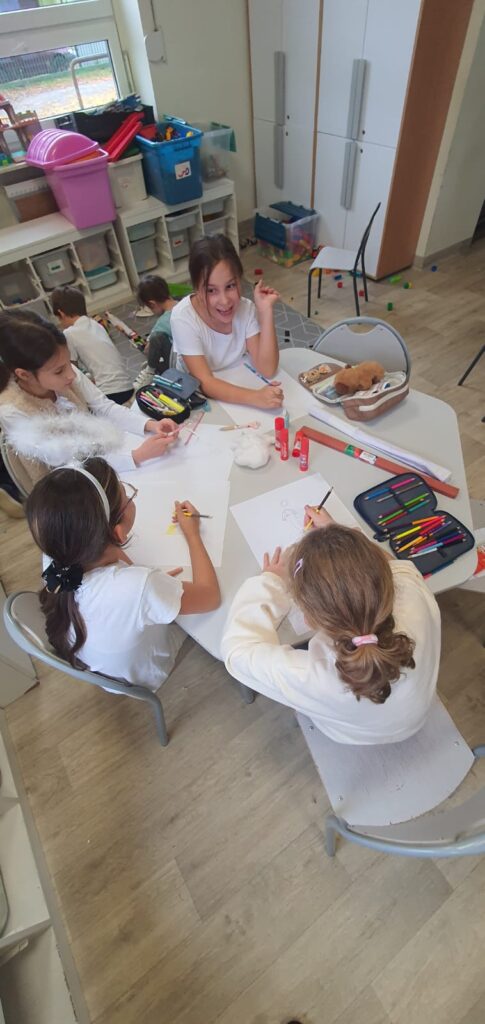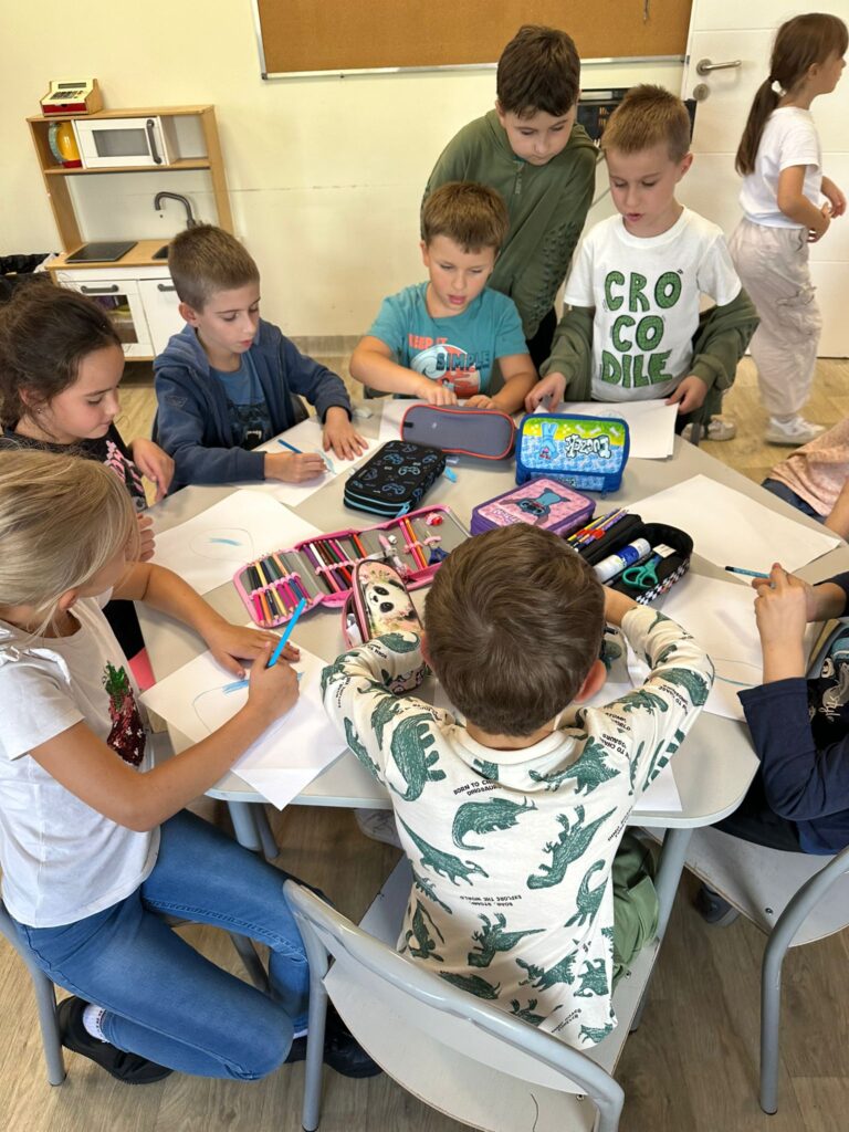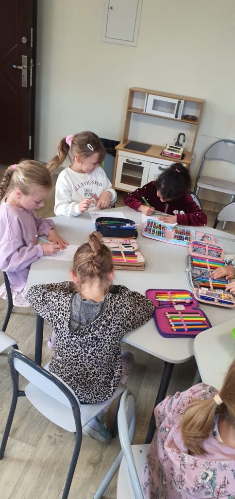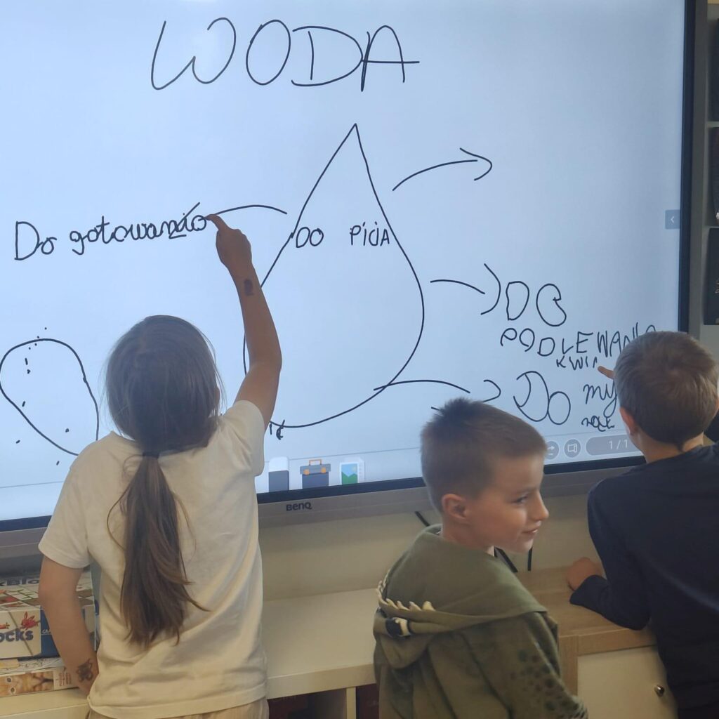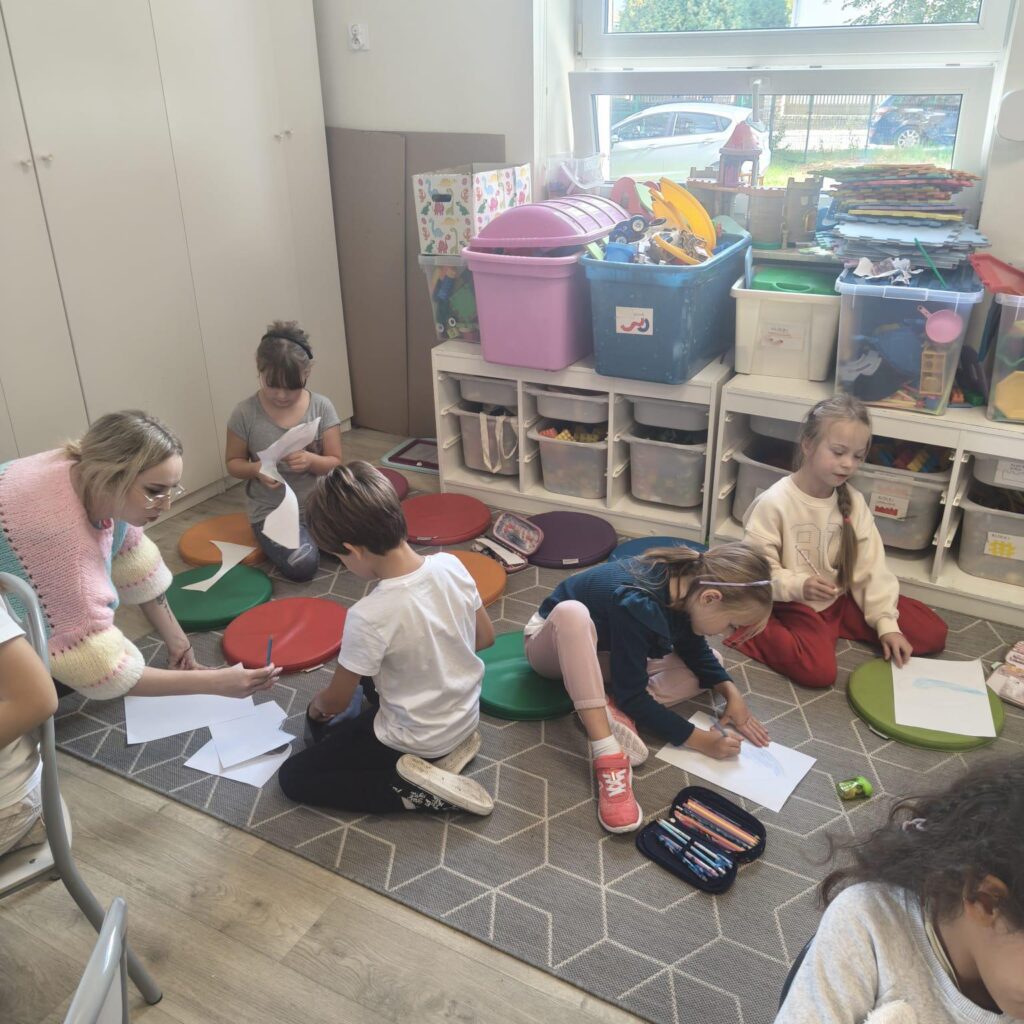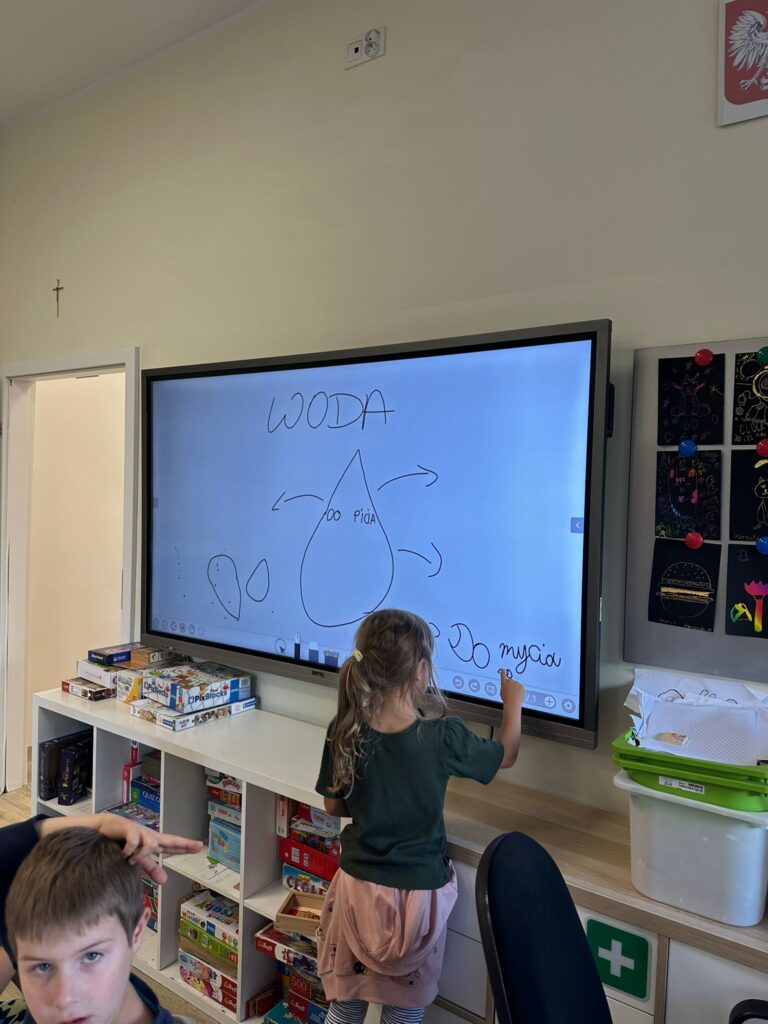W Świetlicy rozmawialiśmy o wodzie – jak ją oszczędzać i dlaczego jest tak ważna. Była burza mózgów, rozmowy oraz przypomnienie zasad segregacji śmieci. Na koniec dzieci pokolorowały i wycięły wielką kroplę wody na podsumowanie zajęć, w której wypisały jak oszczędzają wodę.