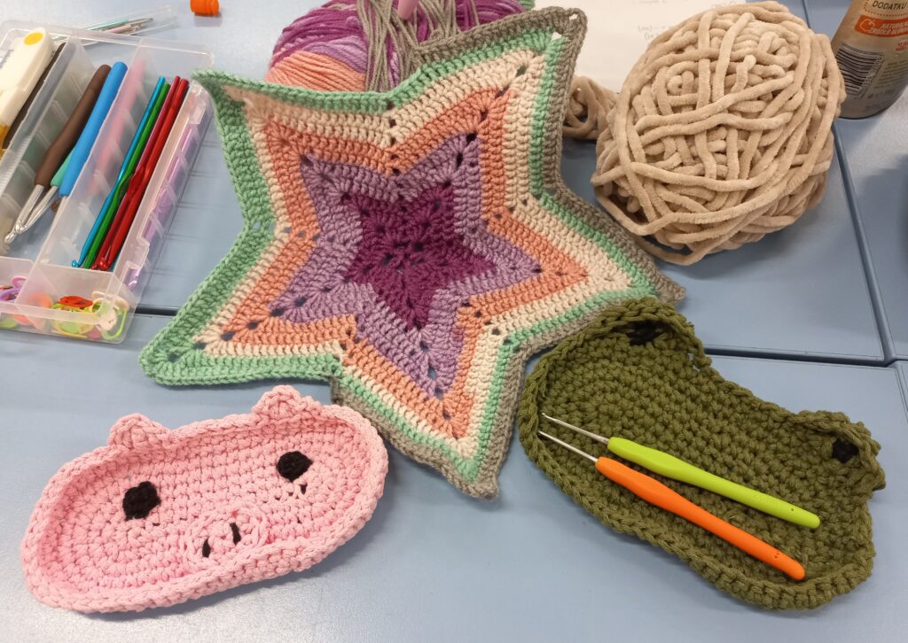 Uczestniczki zajęć szydełkowych radzą sobie coraz lepiej i wykonują coraz bardziej skomplikowane projekty. Nie zawsze wszystko udaje się za pierwszym razem, ale dzięki cierpliwości i ćwiczeniom efekty czarowania szydełkiem są imponujące!
