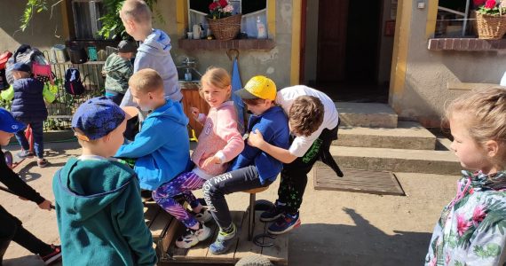 Dnia 2 czerwca oddział przedszkolny, klasy 1a i 1b wybrali się na wycieczkę do gospodarstwa agroturystycznego „Stara Chata u Kowola” w Kluczewie. Uczniowie zapoznali się z wnętrzem kuźni oraz pracą kowala. „Wujek Krzysio” wykuł dla każdej klasy podkowę na szczęście! Dzieci obejrzały również wnętrze starej wiejskiej chaty, dawny sprzęt i zabawki. Największą atrakcją jednak był kontakt ze zwierzętami, ognisko oraz zabawowe szaleństwo!